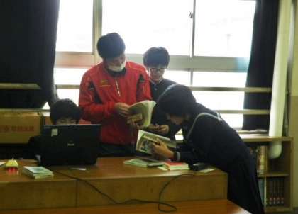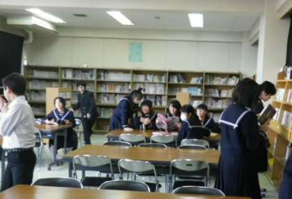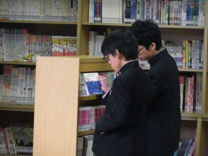 本を見ながら小さな声で談笑する生徒、静かに本の内容に集中する生徒、本の貸し出し担当の図書委員の生徒… 和やかな雰囲気の図書室でした。