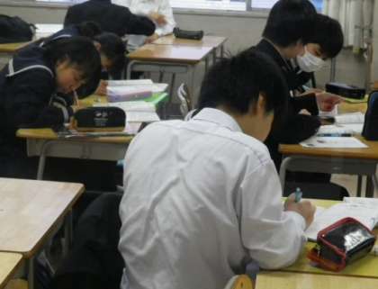 たくさんの生徒が自主的に参加し、テスト勉強をすすめながらわからない所は先生に教えてもらっています。