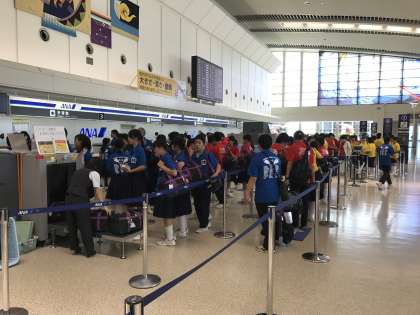 多少疲れがたまり、体調を崩した生徒もありましたが、もちろん大きな事故やケガもなく、生徒たちは今、全員が元気に那覇空港に待機しています。