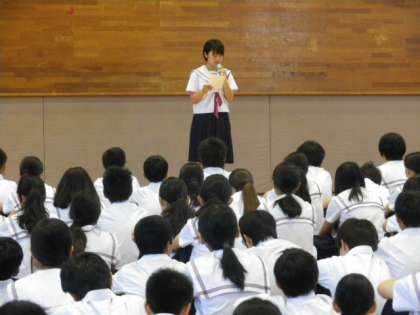 2年生からは、6月11日(日)に出発する「臨海学舎」に向けての抱負が述べられました。 3年生の修学旅行に負けない 立派な宿泊学習にしてくれるでしょう。