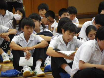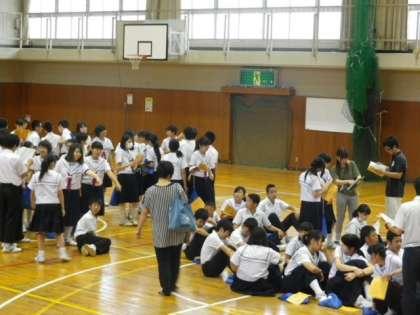 本日(6/7)6時間目には体育館で学年学活を開き、予定されている行程に沿って全体がスムーズに行動できるよう、各プログラムに応じた隊列を確認しました。