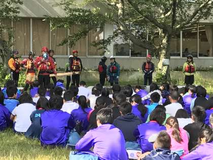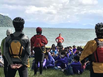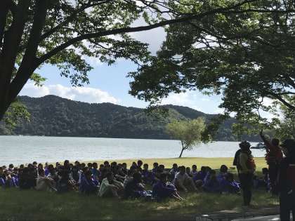 各クラスごとに自分たちでいかだを組み、完成後はもちろん湖へ漕ぎ出します!