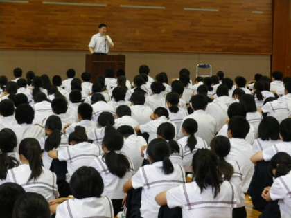 本日は、四條畷警察署生活安全課少年係の方にご来校いただき、実際の少年事件や法律を例に挙げながら 説明していただきました。