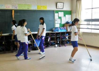 1学期の間、お世話になった教室、校舎をいつもの掃除より時間をかけてきれいにしました。
