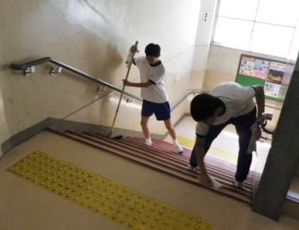 毎日の清掃時間では行えない細かなところまで今日は念入りに掃除します。生徒たちは、協力して頑張ってくれました。
