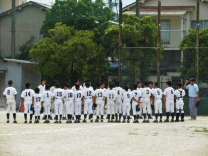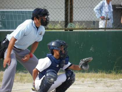 対戦相手は四条中学校。 終始よく声をだし、元気一杯の諸中ナインのプレーは投打がよくかみ合い、10対1の完勝!