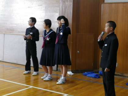 8時30分の集合開始から、生徒会役員と先生がスムーズな集会のスタートを呼びかけます。