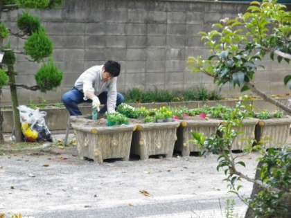いつものように、校務員さんが植え替えてくださったのです。