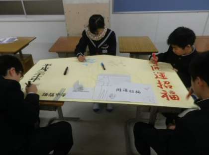 毎年、諸福天満宮へ奉納する大きな 「絵馬」 の制作。 今年も美術部員が精力的に取り組んでくれています。