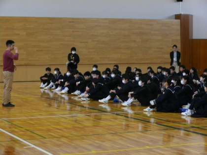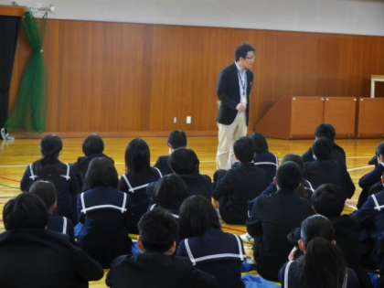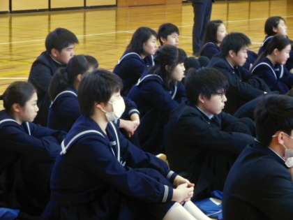 【写真中】進級を控えて、本分である「学習」への気持ちと態度に関する確認と励まし
