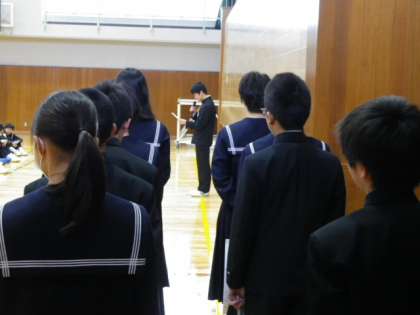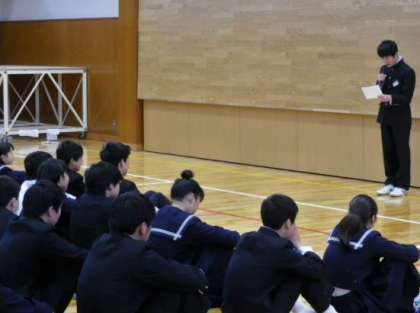3/14に「第36回卒業式」が行われ、3年生が卒業したあと、本日は1・2年生だけの生徒集会が開かれました。