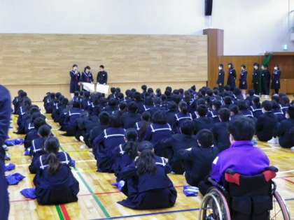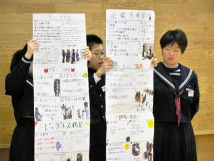 〈写真上・中〉2年学級委員会より、1月に実施した「職場体験学習」の報告です