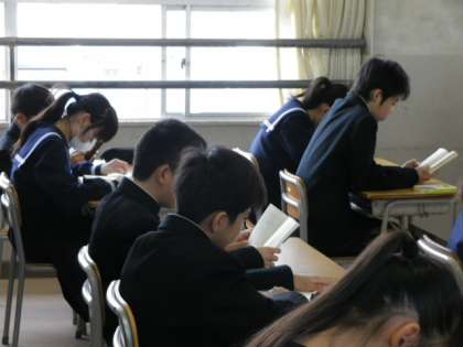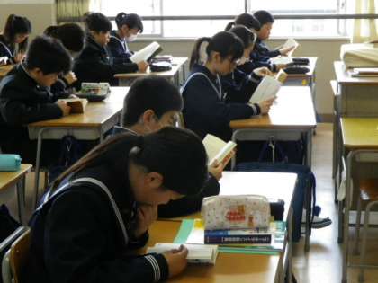 本校では、毎日1時間目が始まる前に 全校生徒で 「読書」を行っています。