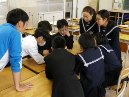 どのクラスの班長も先生とともに真剣に話し合っていました。