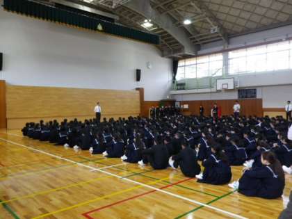 全校生徒が集まる場では、落ち着いて話を聞く態度が身についていますので、今後もこの雰囲気を維持してください。