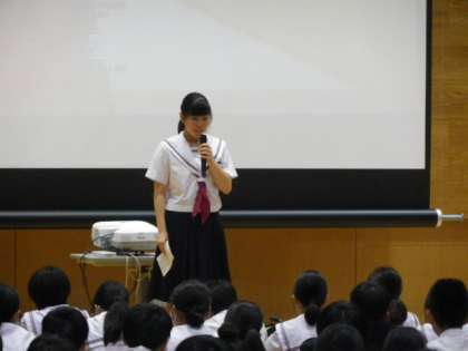 美化委員会から、机上の落書きをなくす取り組みについて、その趣旨と方法について説明です。