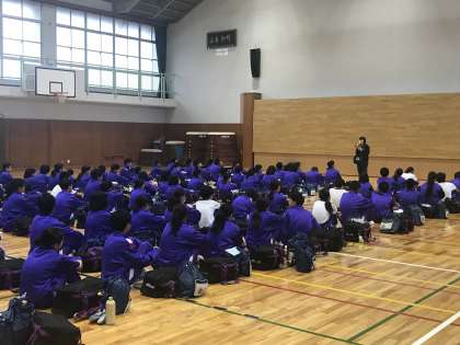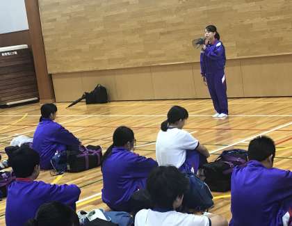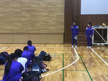 先生からの連絡と諸注意、そして実行委員から学年の仲間へ、素晴らしい臨海学舎にするための激励の言葉です。