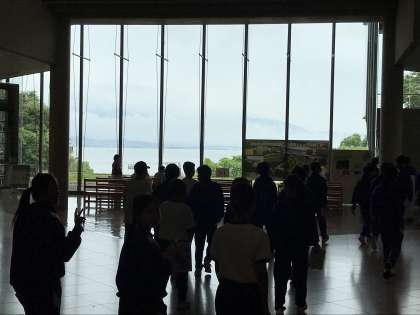 交通渋滞の影響もあり、予定よりも遅れて琵琶湖博物館着です。