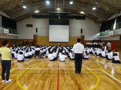 2年臨海学舎の報告、保健・給食委員会からの呼びかけ、クラブ表彰などが行われました。