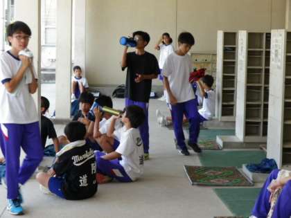 夏休み期間中は、全クラブ(文化部・運動部)共通の約束事として「給水・休息タイム」を設定しています。