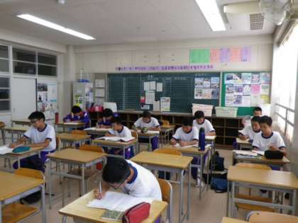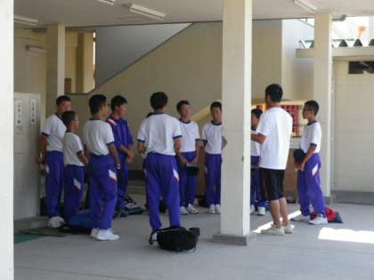野球部は練習前に「自主勉強会」を開き、夏休みの宿題や自分で用意した学習課題をコツコツと進めていました。 感心な態度です!