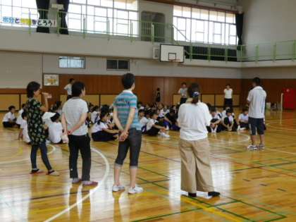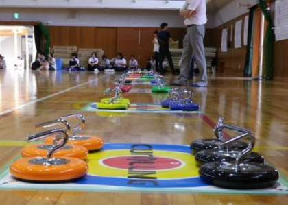 PTAバザーのアトラクションコーナーは人気の「カローリング大会」