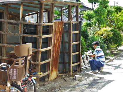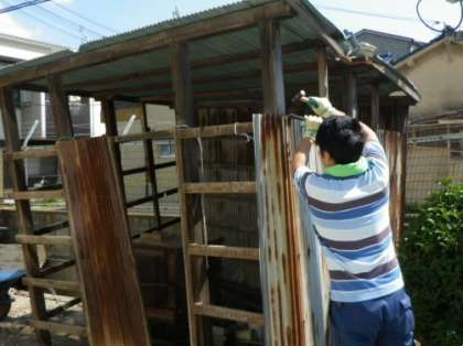 強風にあおられ危険な状態になった木造の小屋は、二次災害につながらないよう校務員さんにより速やかに解体されました。