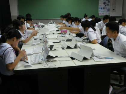 〈2年総合的な学習の時間〉 職業体験学習に向けて、各事業所の仕事調べ