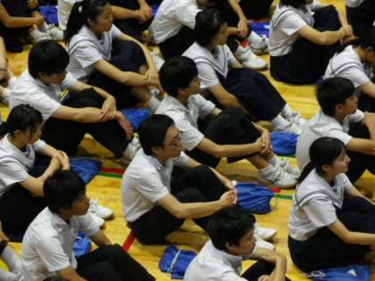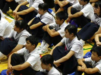 写真上・中:静かに落ち着いて立候補者の演説を聞く全校生徒