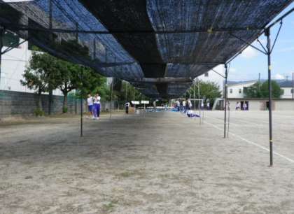 今年は、生徒席に熱中症予防のための遮光ネットを張ってみました。 効果はどうでしょうか?