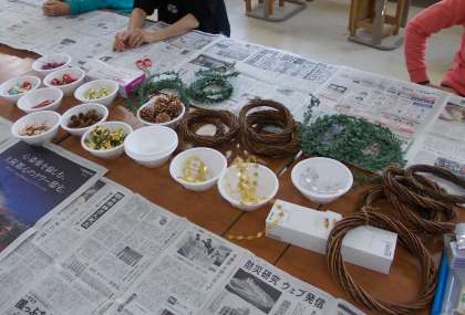 和やかな雰囲気の中で、おしゃれなリースづくりに楽しいひと時を過ごしていただいたようです。
