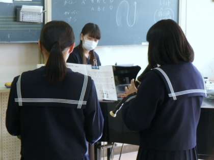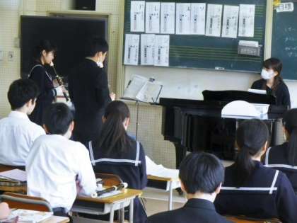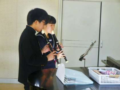 3年音楽科授業では、リコーダーのテストが行われていました。