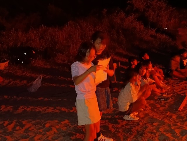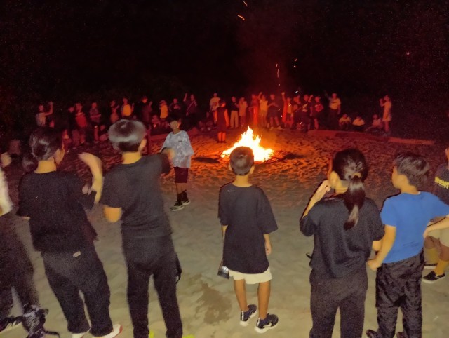 楽しかったことを振り返り、消えゆく火を見ながら「今日の日はさようなら」を歌い、キャンプファイヤーは終了しました。