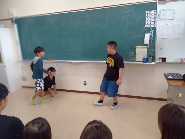 4年生のもう1クラスは、劇でお客さんを大笑いさせていました。