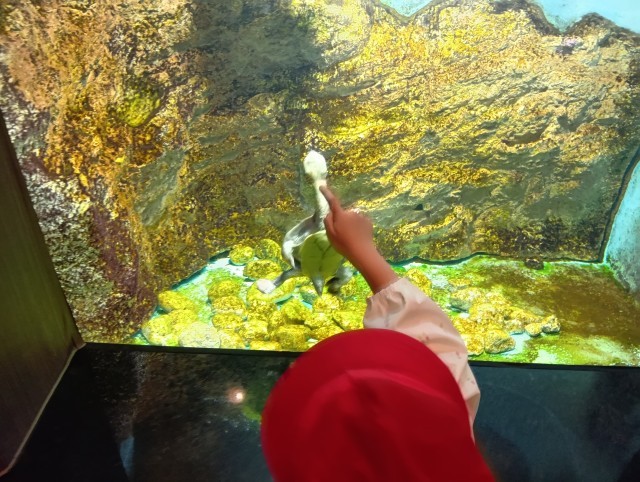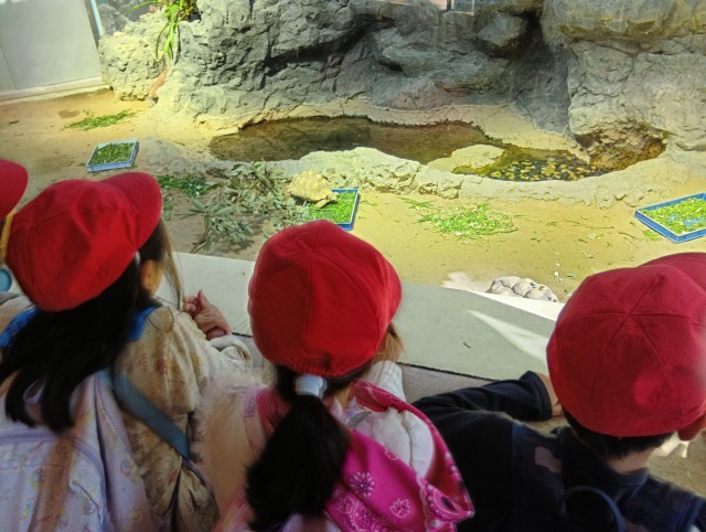動物の名前を呼んだり、くびながガメの水槽に指をあててなぞると同じようにカメの首が動くことを発見したり、たくさんの動物を見ることができました。