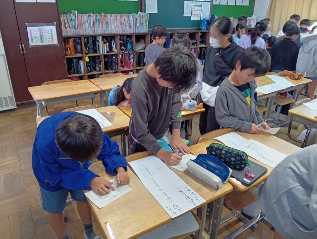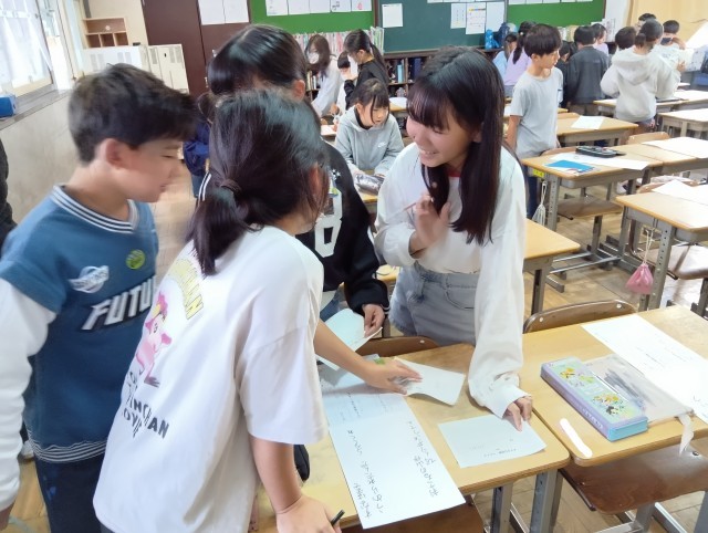 「なんでこの言葉を選んだん?」「この表現、気持ちがよく出ていていいなー。」などと質問したり、感想を言い合ったりしながら交流していました。