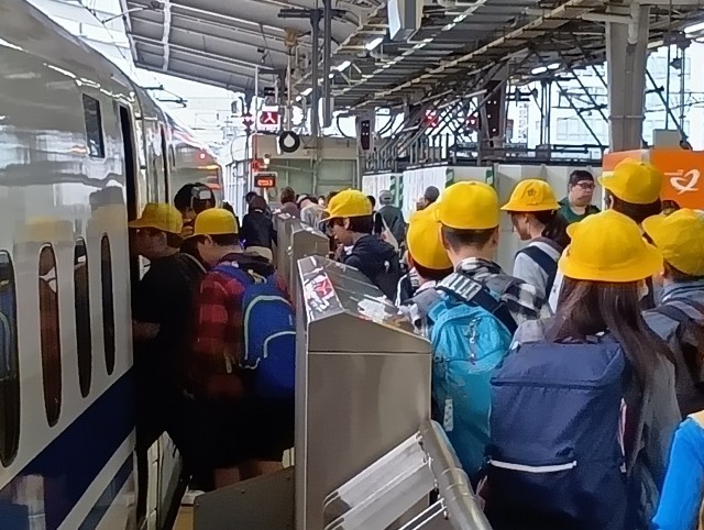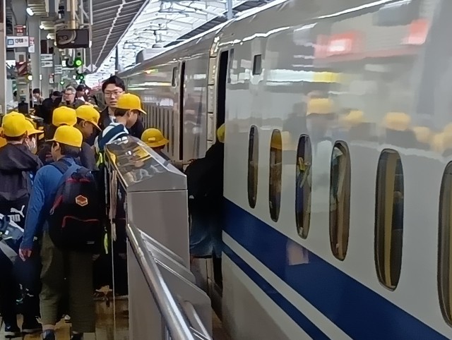 新幹線に乗りました。新大阪駅での停車時間は2分と短いですが、スムーズに乗り込むことができました。