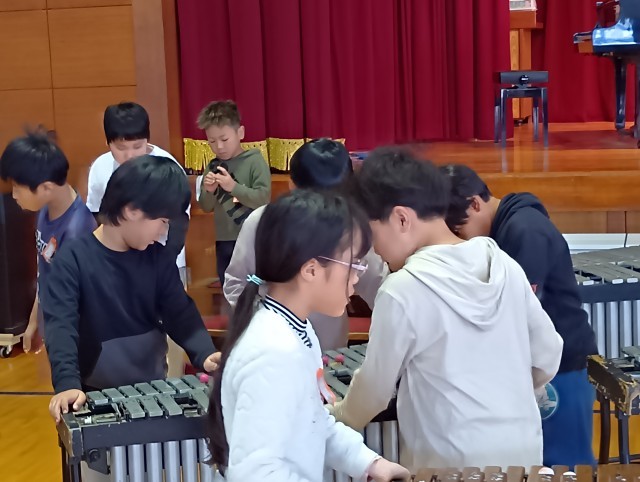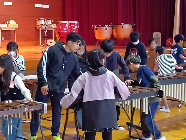 休み時間を使って個人練習をする子どもたち。再度合奏を通して休み時間を過ごしていました。