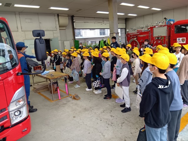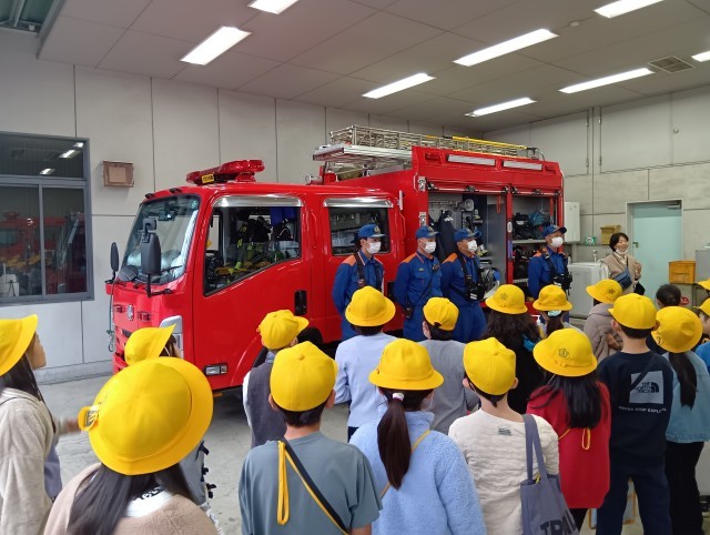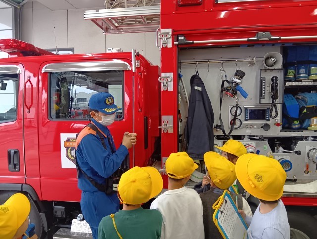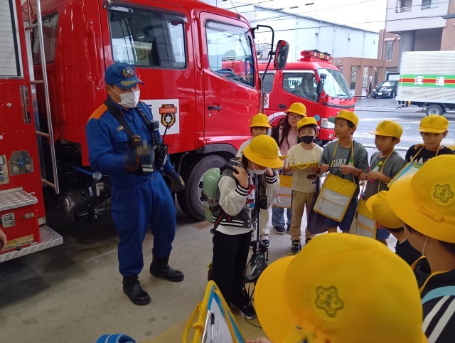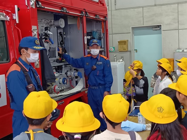 消防車に積んでいるものや消防署の施設を見せていただきました。