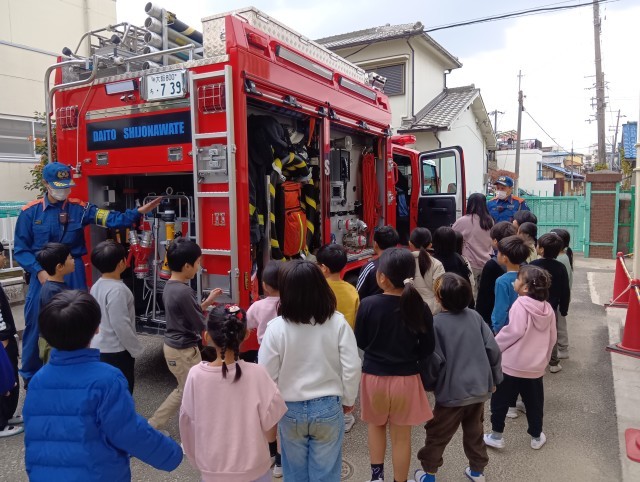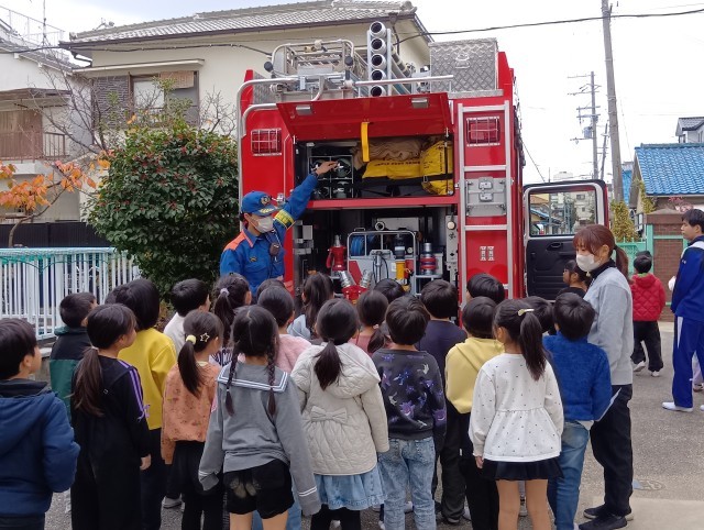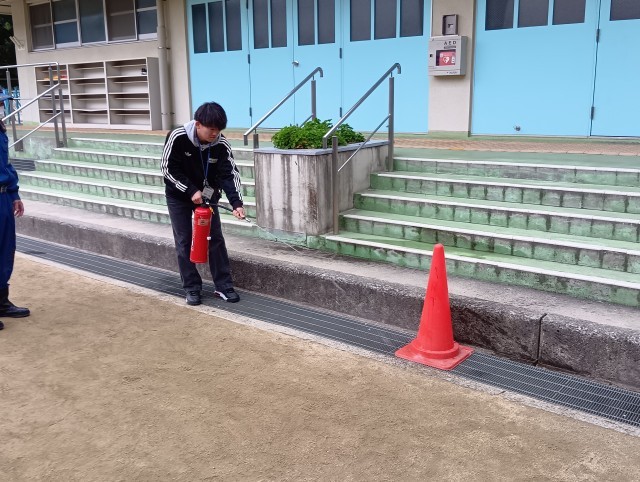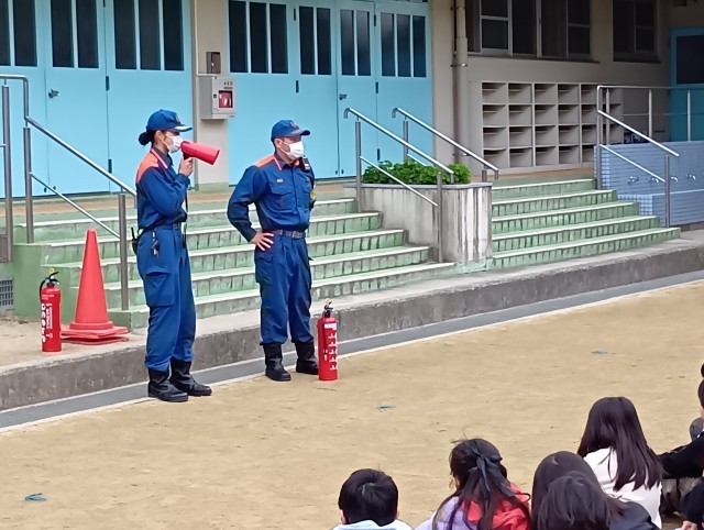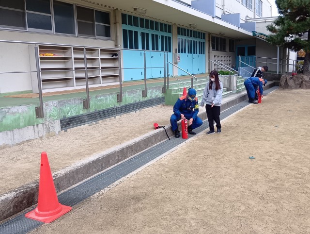 消防署の方に来ていただき、消火器の使い方を教えていただいたり、火事に関するクイズを出していただいたりして、学ぶことができました。
