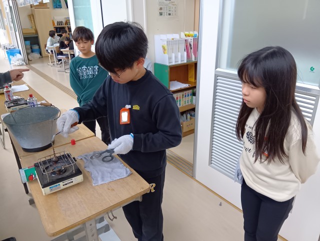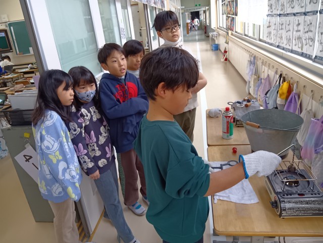 4年生は理科で、金属の体積は温度によって変化するのかを学んでいました。