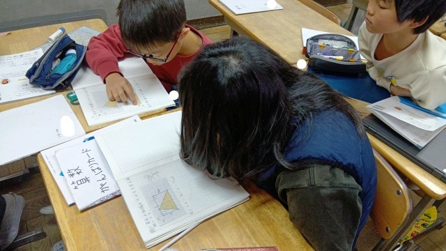 5年生は算数の授業で「三角形の面積」の学習をしていました。