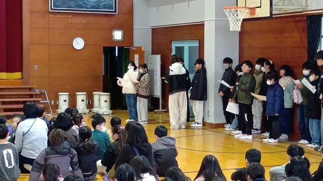 今日は、先々週の給食感謝集会に引き続き、「カレンダー贈呈式」を行いました。