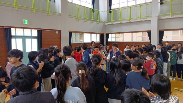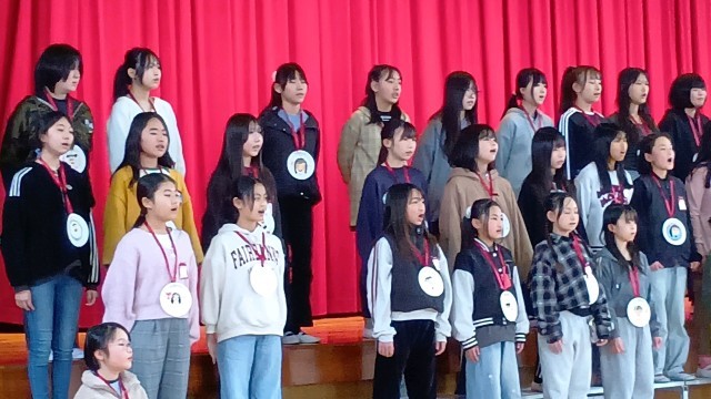 児童会の会長からそれぞれの学年に対してお礼を伝え、「この歌はみなさんへのプレゼントです」と。
