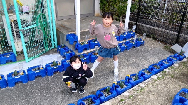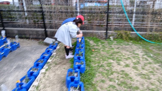 寒い朝でもしっかりと水やりをしている1年生。優しいね。