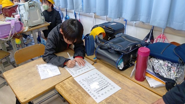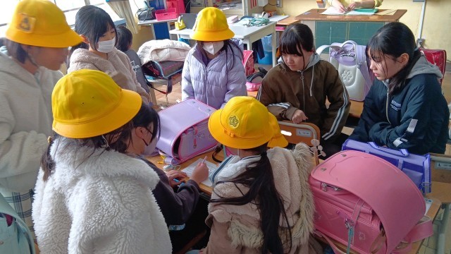 5年生を中心に新しい班長・副班長を決め、新1年生に集団登校の案内のお手紙も作りました。