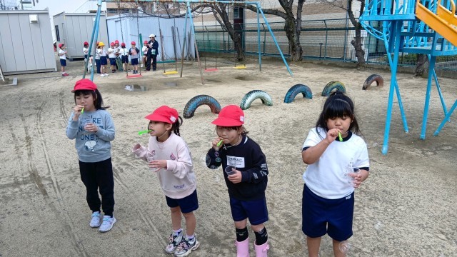 1年生がシャボン玉をしていました。