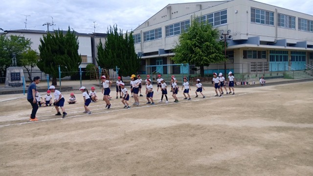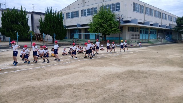 3年生は、体力テストの「反復横跳び」と「立ち幅跳び」の練習をしていました。