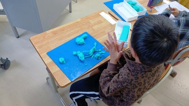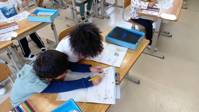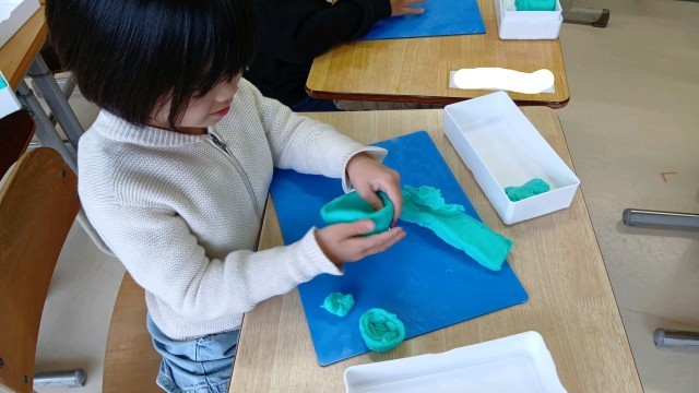 1年生は朝の学習で「ねんどあそび」をしたり「おえかき」や「ぬりえ」をしたりしていました。