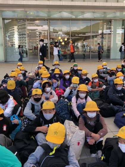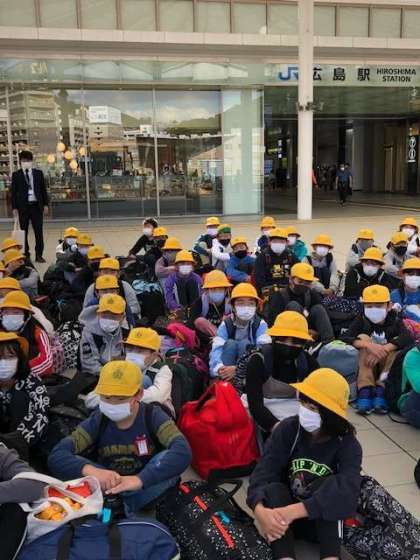 蒲刈島から広島駅までバスで1時間ほど。車内では、ほとんどの子たちが爆睡でした。
